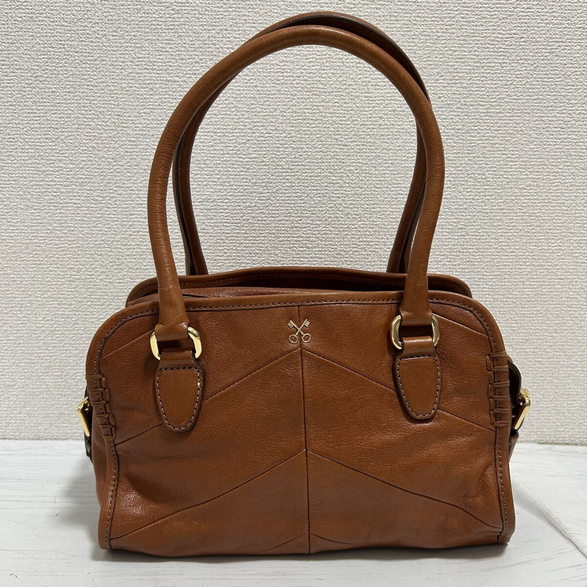 > 美品 SAZABY サザビー レディース ハンドバッグ トートバッグ カバン 本革 牛革 レザー 茶色 ブラウン ゴールド金具 ワンポイント ブランド