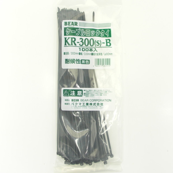 - 【新品】ケーブルロックタイ 300mm スリムタイプ 黒 耐候性 100本入 結束バンド