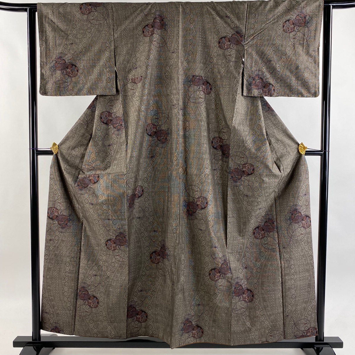 - 【美品】 紬 身丈157.5cm 裄丈63cm S 袷 鼓 姫 焦茶色 正絹 秀品 【中古】