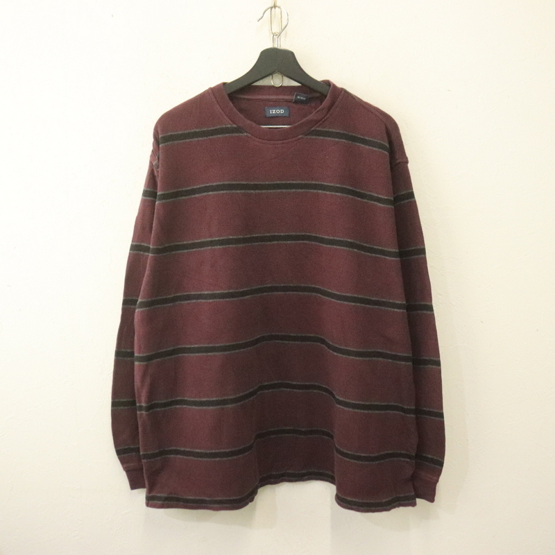 > y521 90sビンテージ IZOD アイゾッド コットンニットセーター■1990年代製 表記XLサイズ ボルドー ボーダー アメカジ ストリート 古着 激安