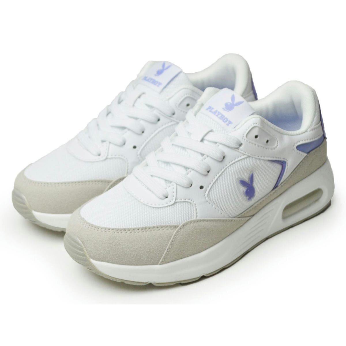 > 新品■23.5cm レディース スニーカー PLAYBOY プレイボーイ 軽量 軽い スポーツシューズ 屈曲 防滑 カジュアル ホワイト ロゴ【エコ配送】