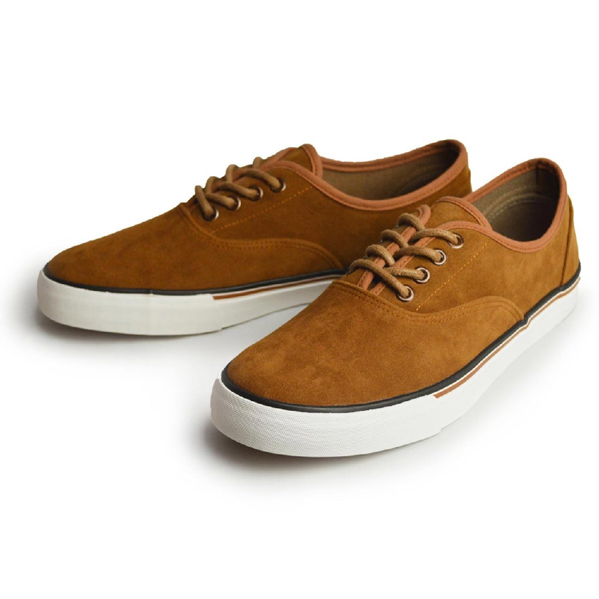 - 新品■25.5cm メンズ カジュアル デッキシューズ 軽量 スニーカー 紐靴 フラット コンフォート クッション スエード 配色【エコ配送】