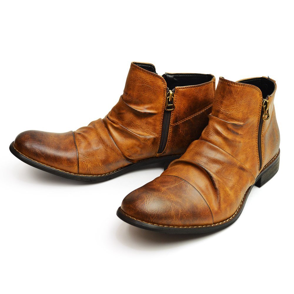 > 新品■28cm Wサイドジッパー ドレープブーツ チャッカブーツ アンティーク ブーツ ショートブーツ メンズ キレイめ ビンテージ 男 靴