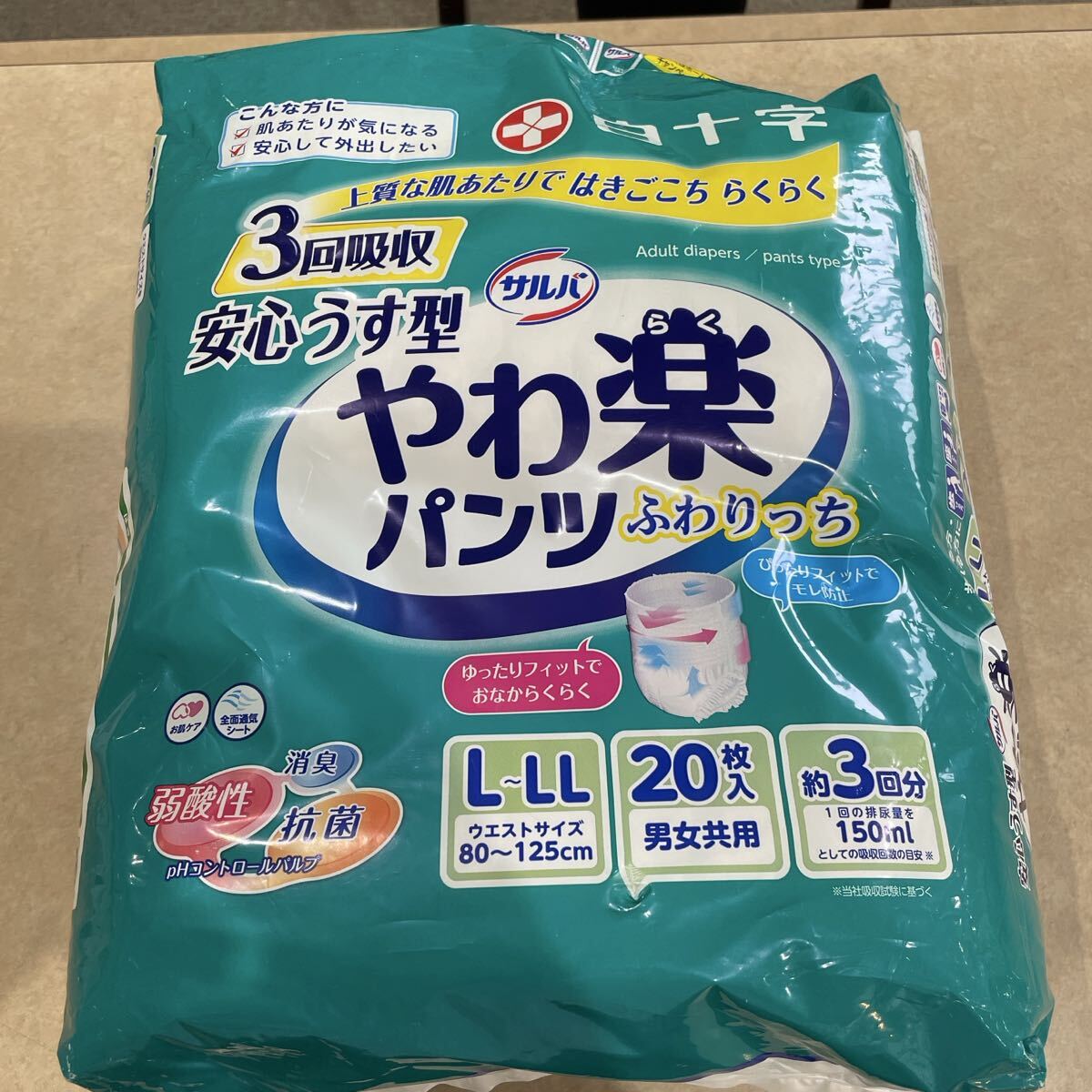 - 白十字 パンツ型おむつ Lサイズ 20枚入 サルバ やわ楽パンツ 大人用紙おむつ 白十字 男女兼用 L〜LL パンツタイプ やわ楽 うす型 男女共用