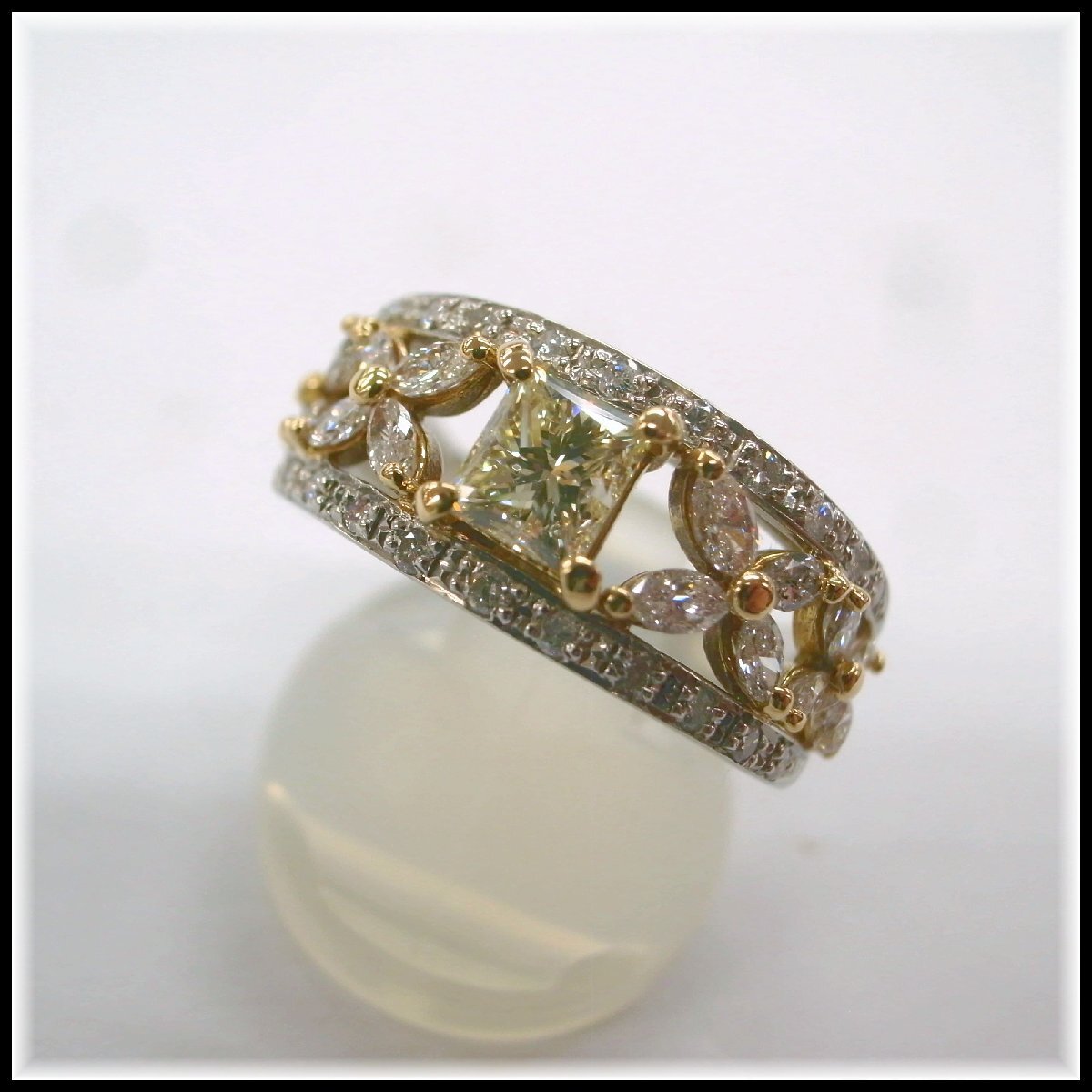 - B208T 【本物保証】 PT900/K18イエローゴールド ダイヤモンド メイン 0.522ct 脇石 0.54ct リング 11.5号 8.3g 研磨仕上げ済み
