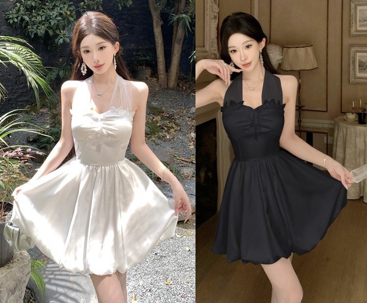 - ミニワンピース ショート丈ワンピース フリル ノースリーブ 袖なし キャバクラドレス L ブラック