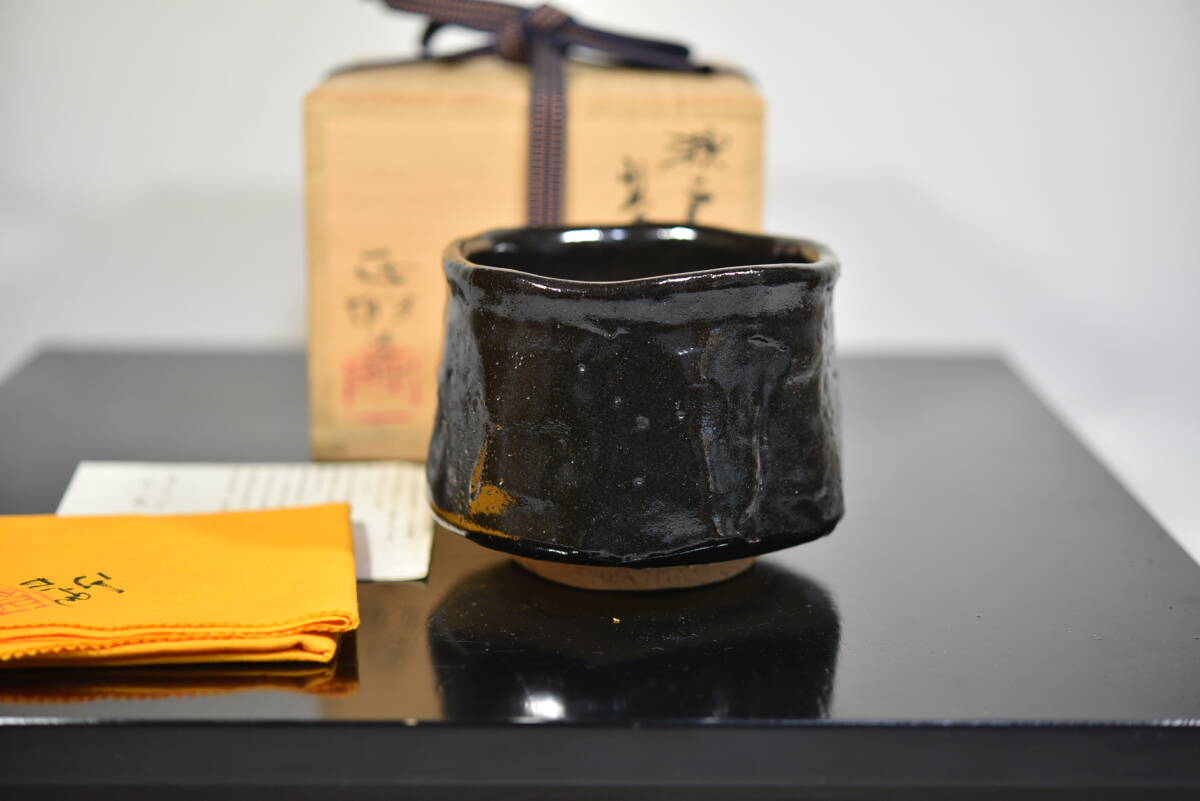 - 美濃 雅山窯 瀬戸黒茶碗 中島正雄 茶道具