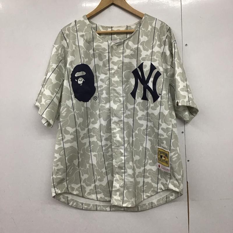 - A BATHING APE XL アベイシングエイプ シャツ、ブラウス 半袖 Mitchell Ness NEWYORKYANKEESABCCAMOJERSEY ベースボールシャツ 10141012