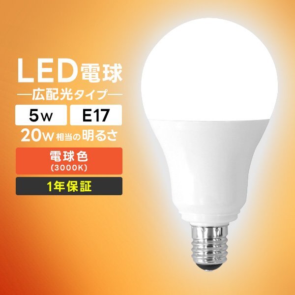 > LED電球 5W 口金E17 明るさ20W相当 電球色 LED 電球 工事不要 替えるだけ 省エネ 高寿命 節電 ライト ランプ トイレ 風呂場 照明器具