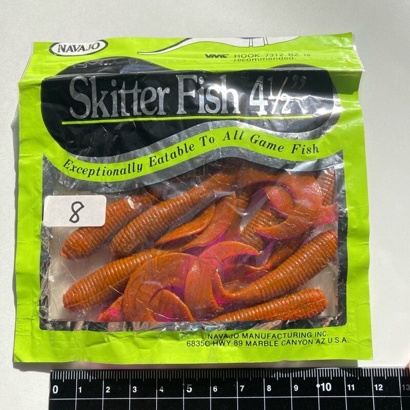 816358 ナバホ オリジナルグラブ 8本 #ブラウングレープ系グリーンラメ NAVAJO ORIGINAL GRUBS 【状態 A/C】袋がスキッターフィッシュです拍卖