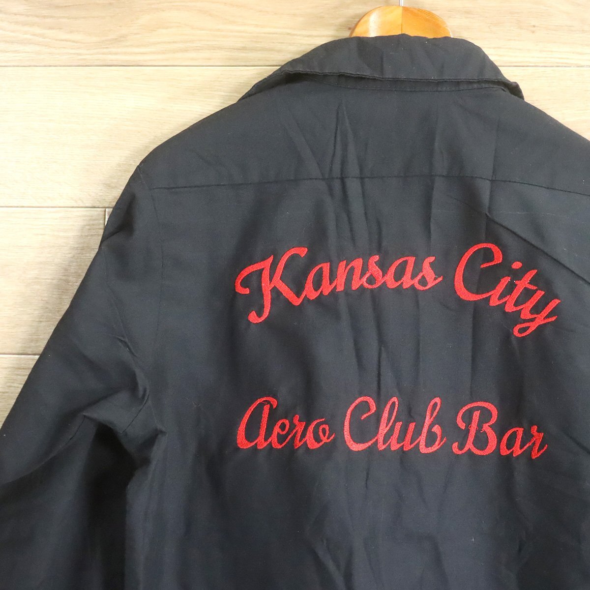 > $2T/S11.4 アメリカ古着 Uniwear ワークシャツ M位 文字 バック刺繍 KANSAS CITY AERO CLUB BAR
