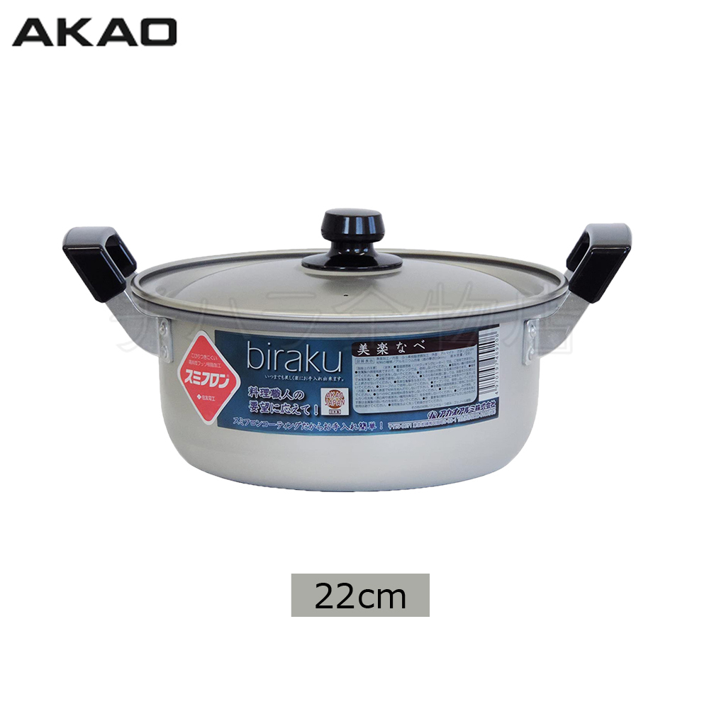 - 在庫限り!アカオAKAO 美楽なべ 22cm(3.6L) 蓋付き フッ素樹脂加工 IH不可