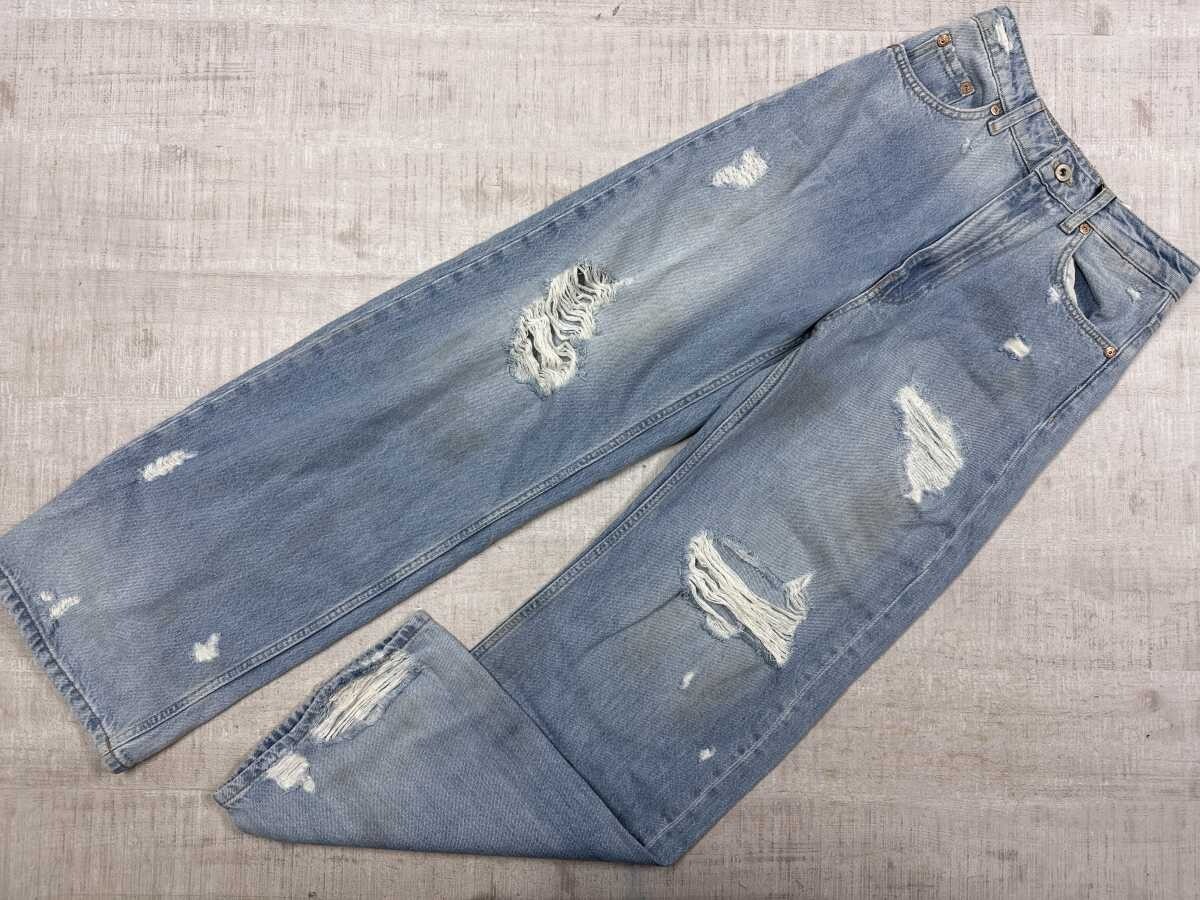 > 新品タグ付 ザラ ZARA ストリート グランジ ギャル ダメージ加工 ワイド デニム パンツ ジーンズ ボトムス レディース コットン100% XL 青