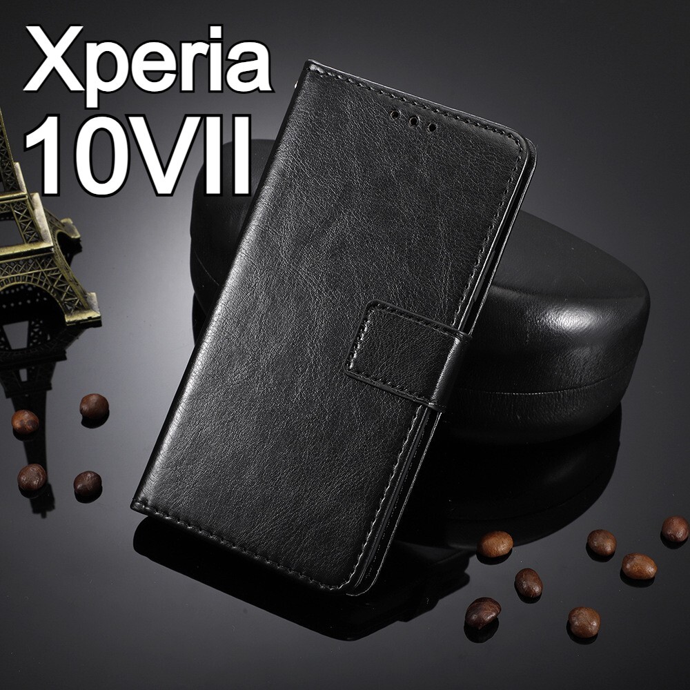 > Xperia 10VII 手帳型 ブラック スマホケース (ゆうパケ)