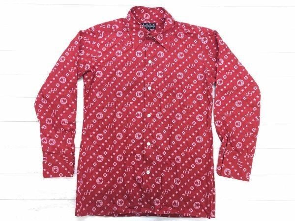 > フォーバーズ Four Bars レトロ オールド ストリート 古着 モノグラム 総柄 長袖シャツ メンズ コットン100% M 赤