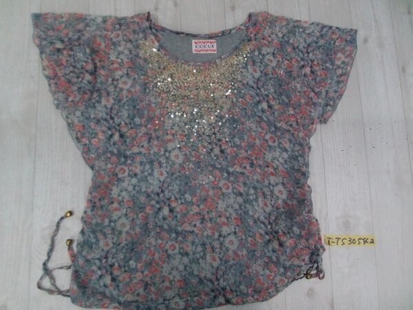 - COCUE コキュ レディース 小花柄 スパンコール付き カットソー 02 グレー赤