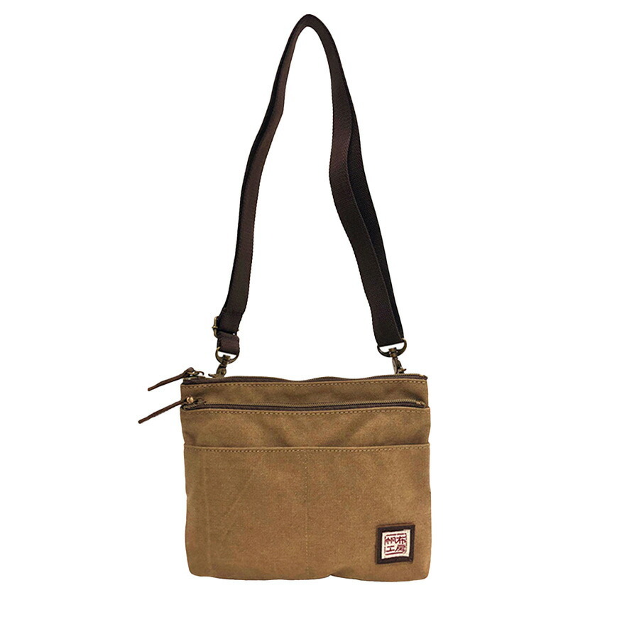 帆布工房(ハンプコウボウ)2wayサコッシュ商品番号:3J53ムラのある10号帆布を使用した、サコッシュです。少ない持ち物をシンプルにスタイリッシュに収納したい方におすすめです。帆布特有の風合いを生かしたナチュラルなデザイン・カラーなので、男女兼用でお使いいただけます。使うほどに味わいが増していくのも、帆布の魅力です。ショルダーは取り外し可能でポーチとしても使えます。持ち歩きの邪魔にならないスリムなシルエットに、ポケットも充実しているので、小物や貴重品の整理に便利です。コンパクトで丈夫なので、普段使いはもちろん、野外フェスやお祭りなどのイベントでも、幅広く活躍してくれます。パスポートやチケットの収納も可能なサイズなので、旅行時のサブバッグとしても最適です。