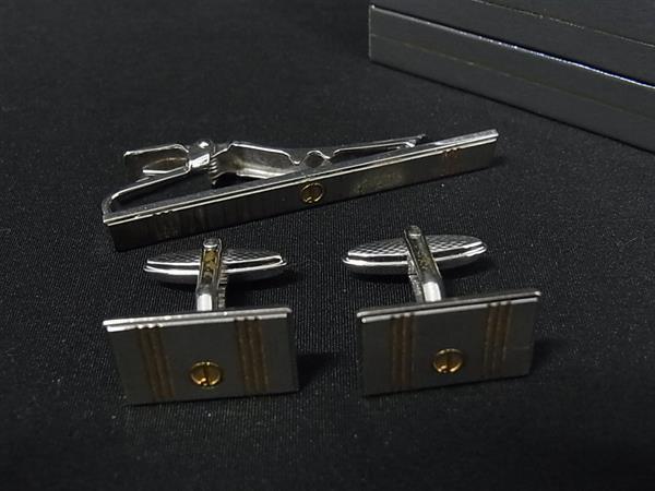 > dunhill ダンヒル ネクタイピン カフスボタン カフリンクス 2点セット ビジネス 紳士 メンズ シルバー系×ゴールド系 DK7778