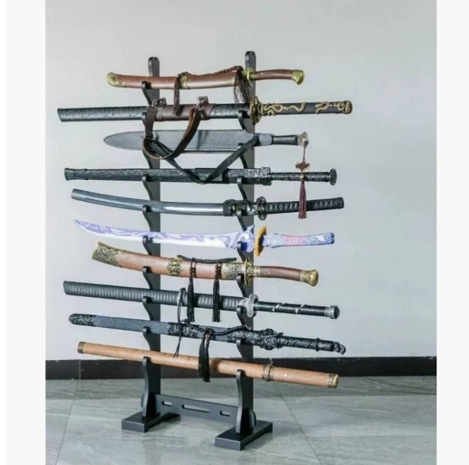 - 組み立て簡単 刀掛け剣スタンド 刀置き 日本刀 模造刀8連 黒 ブラック