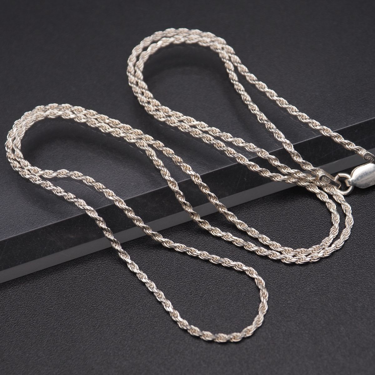 - H741 ヴィンテージ 925 ITALY刻印 ネックレス スクリュー ロープチェーン デザイン シルバー