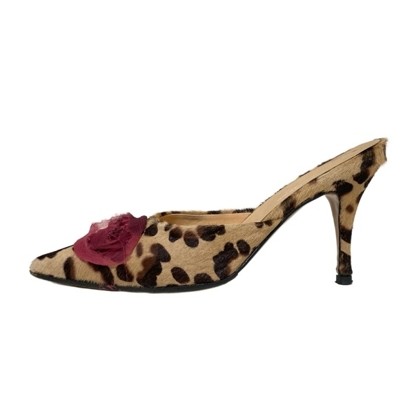 > ロートレショーズ L'AUTRE CHOSE ミュール 35 - ベージュ×ダークブラウン×ピンク レディース 豹柄/フラワー(花)/アウトソール張替済 靴