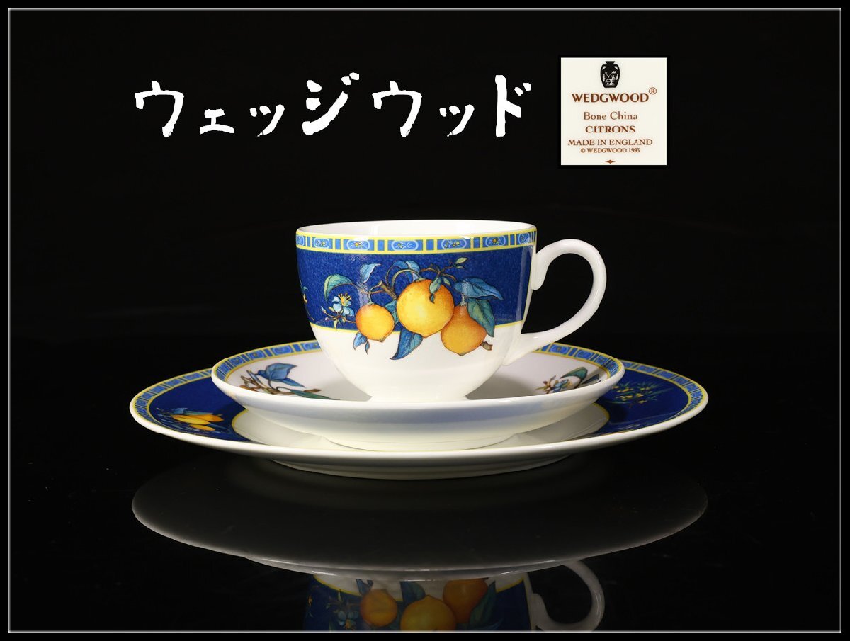 > 【吉】CN744 WEDGWOOD 【ウェッジウッド】 果物紋 CITRONS シトロン カップ&ソーサー プレート 1組 3点セット/美品!