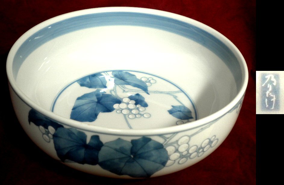 - 売切 乃りたけ ノリタケ 露染鉢 染付 中鉢 1式 箱無 、未使用品 纏め購入特典有 寸法:φ200×H75mm、重量:720g