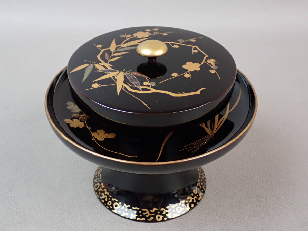 - 【骨董・茶道具】★蒔絵 螺鈿細工★★花文天目台 gq0031ub 盃台 杯台 酒器 煎茶道具 大名道具