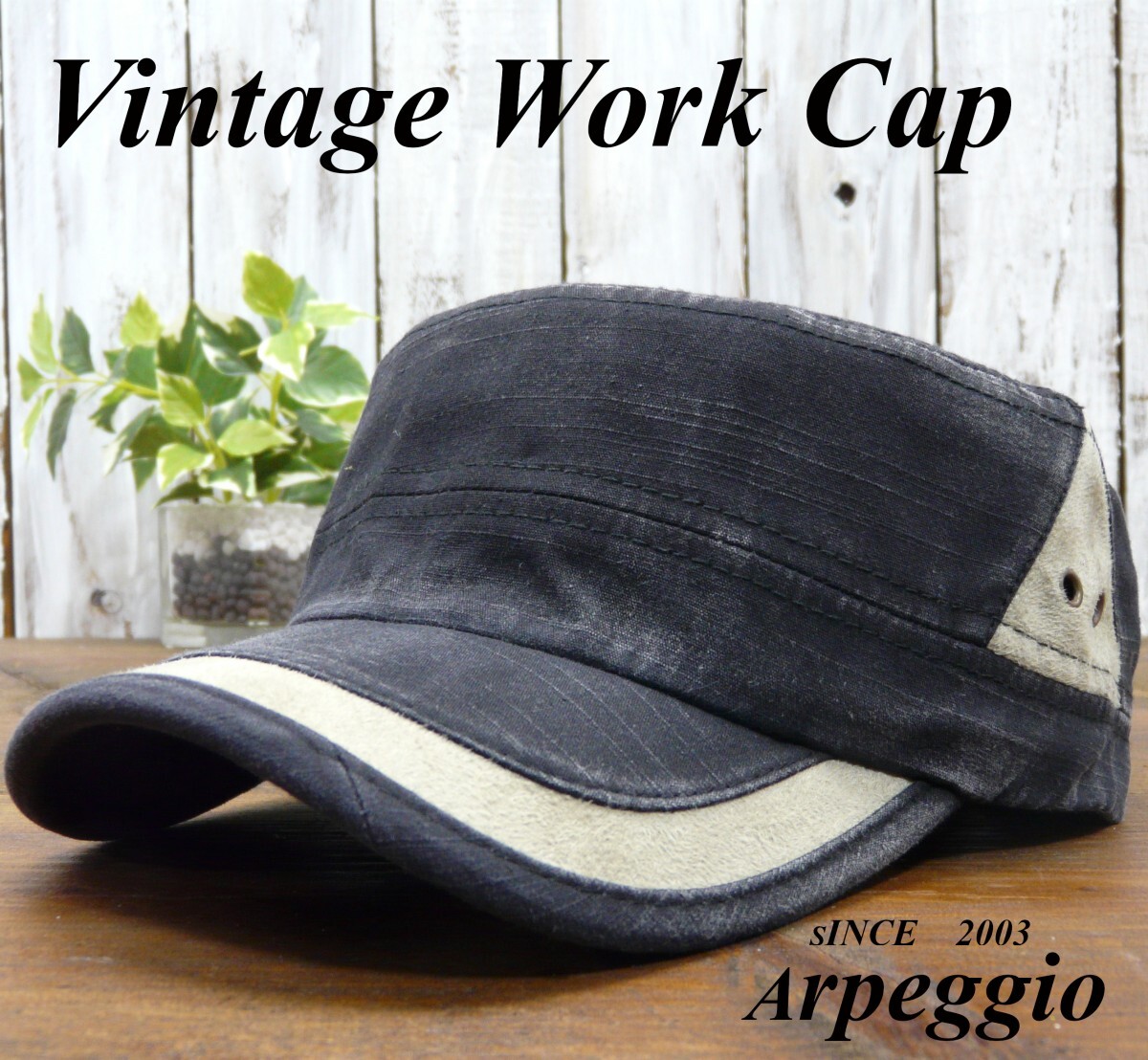 - ダメージ ワークキャップ 色あせ ブラック 薄茶色 サイズ調整可 送料\450 男女OK メンズ レディース