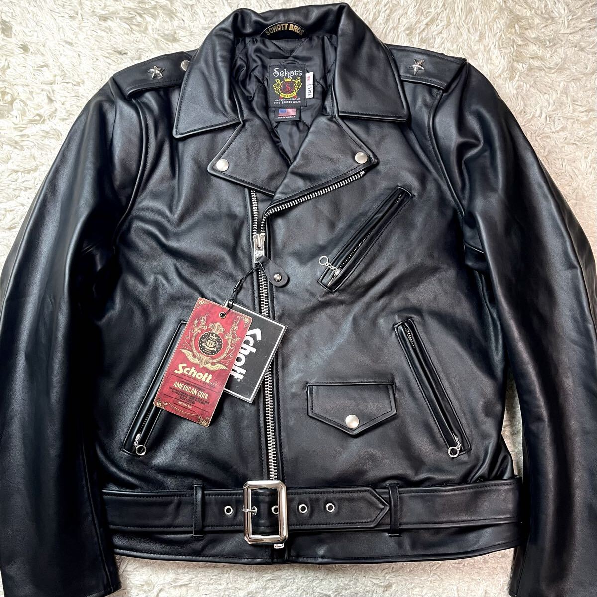 - ●新品未使用/タグ付き SCHOTT ショット ワンスター ダブルライダース レザージャケット 613UST 黒 ブラック 38インチ 現行 本革 レザー