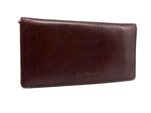 > Salvatore Ferragamo フェラガモ レザー 二つ折り 長財布 ウォレット 札入れ 小銭入れ カード入れ レディース ボルドー系 DJ4078