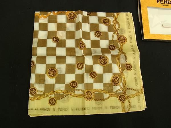 - ■新品同様■ FENDI フェンディ チェック柄 スカーフ ハンカチーフ ポケットチーフ レディース メンズ ブラウン系×ホワイト系 DK6446