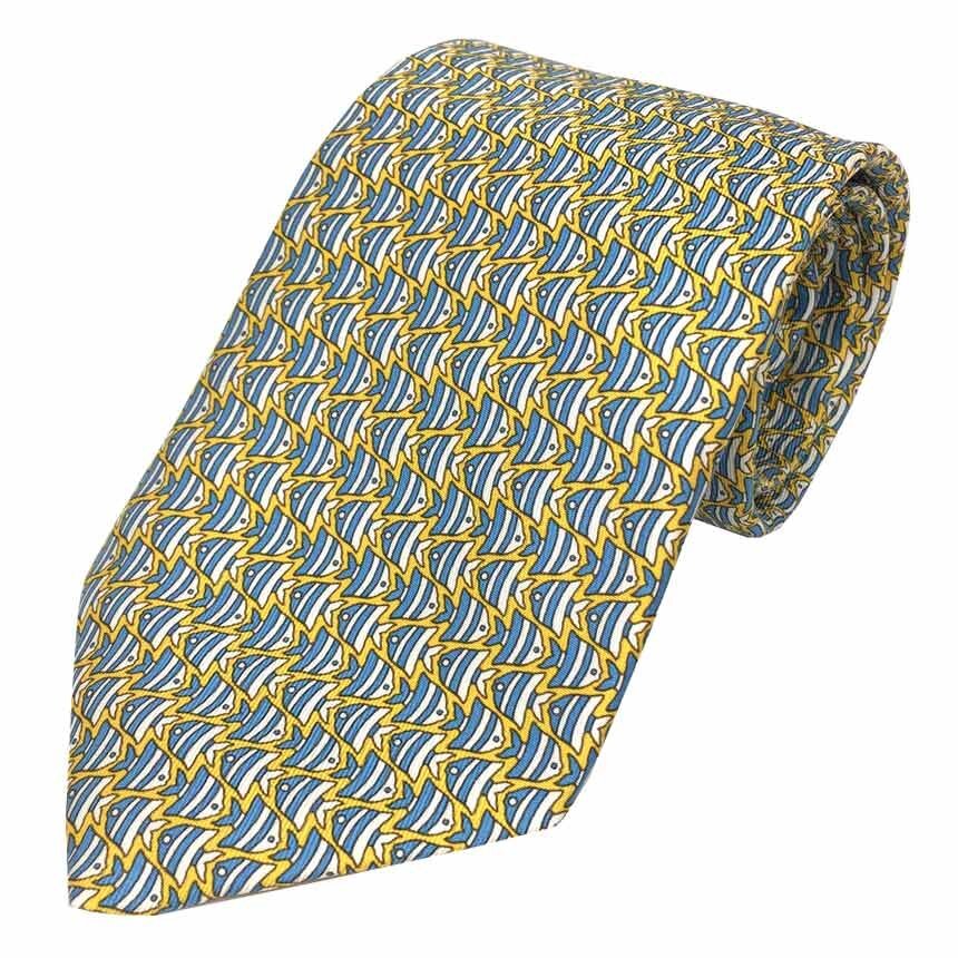 - 送料無料 HERMES エルメス ネクタイ 絹100% フィッシュ Fish 魚 さかな シルク 未使用 新古品 aq7982