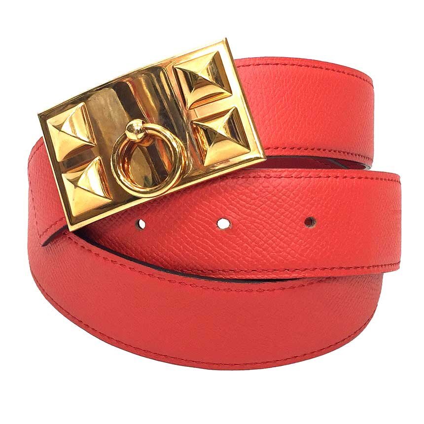 - 送料無料 HERMES エルメス ベルト レディース メドール コリエドシアン リバーシブル 80サイズ 赤 ゴールドバックル aq10671
