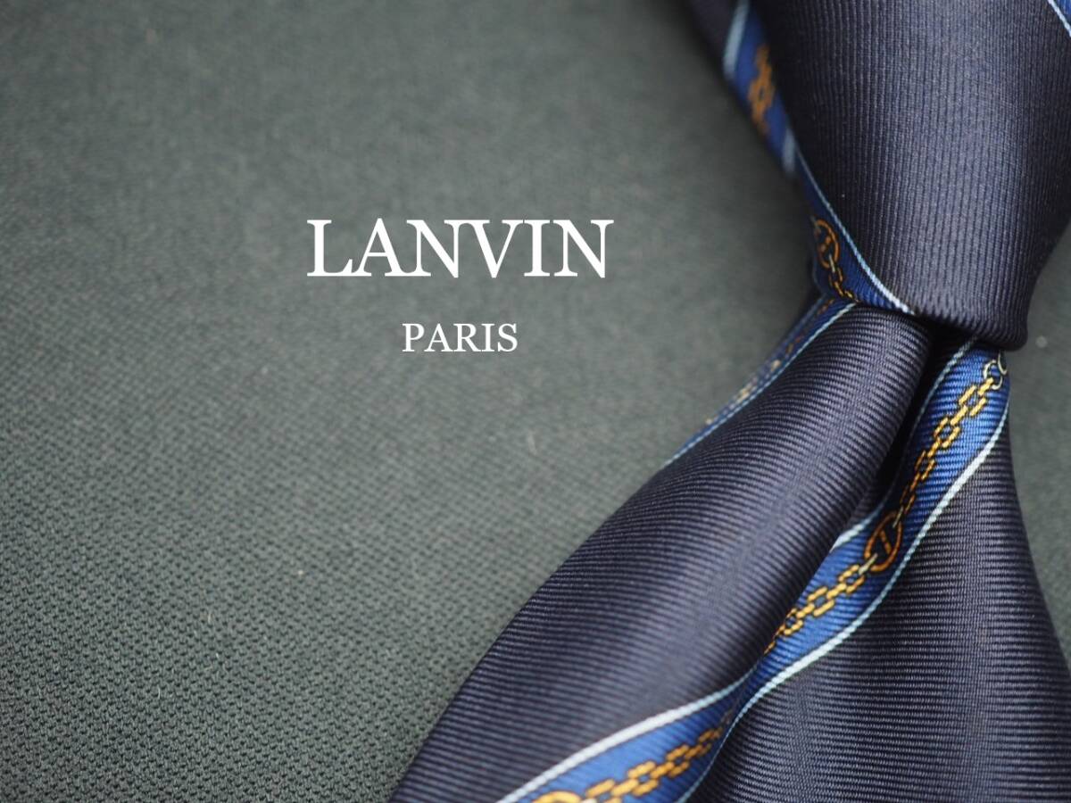 - 美品【LANVIN ランバン】 G1063 ネイビー系 SILK ブランド ネクタイ 古着 良品 転売 仕入
