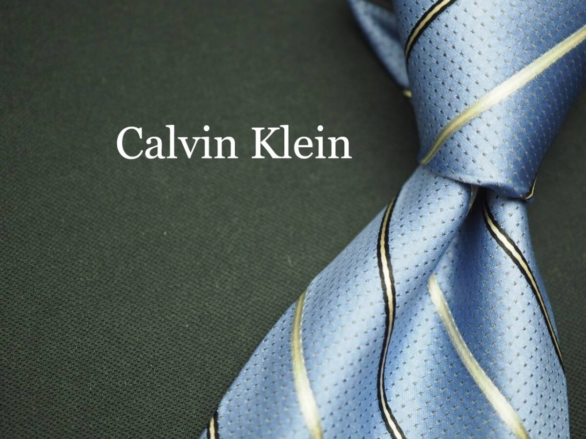 > 美品【Calvin Klein カルバンクライン】 G1035 水色シルバー系 SILK ブランド ネクタイ 古着 良品 転売 仕入