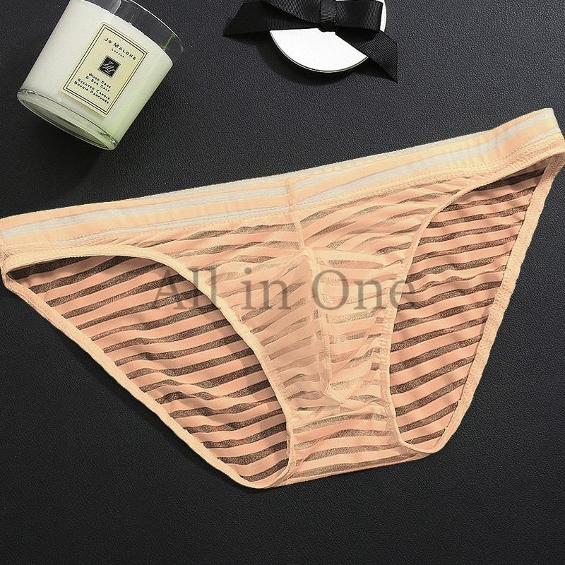 - 97-192-5 透けボーダー メンズ ブリーフ パンツ 【ベージュ,XLサイズ】男性 下着 ショーツ セクシー インナーウェア スケスケ パンツ.3