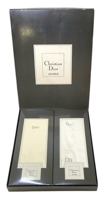 - 未使用 クリスチャンディオール ディオール 箱入り ソックス 2点セット ホワイト 靴下 メンズ Dior 【中古】