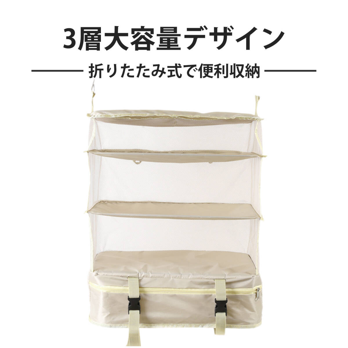 - 吊り下げポーチ 旅行用ポーチ 旅行圧縮バッグ 吊り下げ トラベルポーチ圧縮バック 吊り下げ収納大容量 吊り下げ式 収納バッグ 三層 ;J7163;