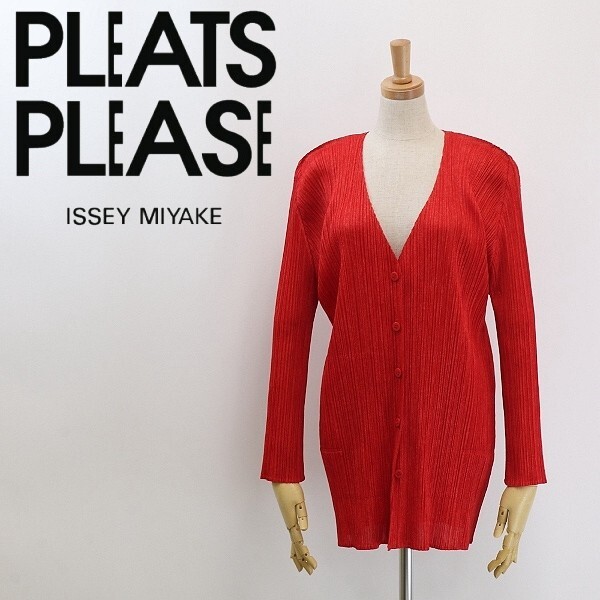 - 【HA956】◆PLEATS PLEASE プリーツ プリーズ イッセイミヤケ プリーツ加工 カーディガン 赤 レッド 3