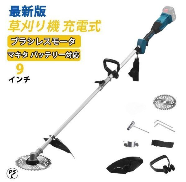 - 充電式 草刈り機 マキタバッテリー対応 電動 9インチ ブラシレスモータ 刈払機 肩掛け付き 替刃付き コードレス 多機能 本体のみ