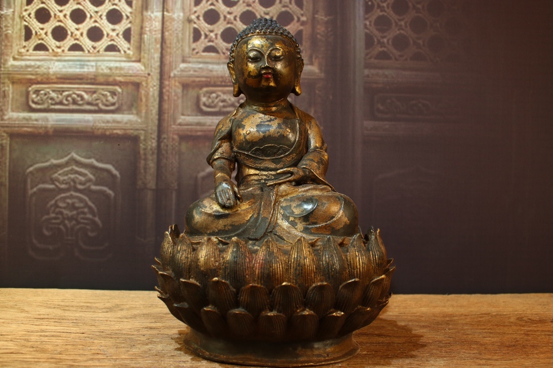 - 「早期收集 明代 古銅塗金 釈迦 仏祖 仏像 佛像 供奉置物 仏教古美術」時代物 古董品 旧家蔵出し 唐物 中国古玩 古美術品