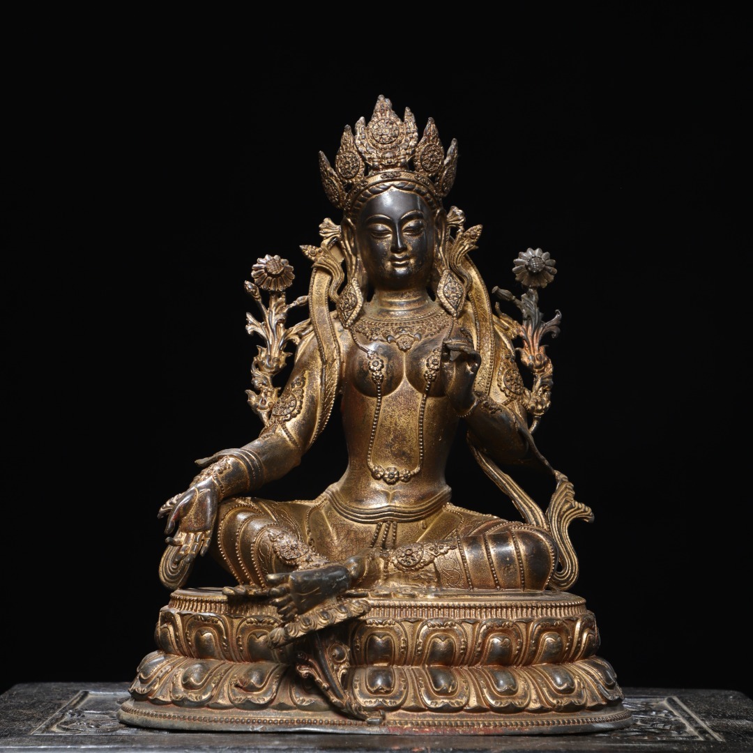 > 清時代 古銅泥金彫 綠度母 仏教古美術 仏像 仏 宗教 造像 供奉 置物 擺件 稀少珍品 時代物 古董品 骨董 旧家蔵出し 唐物 中国古玩 古美術品