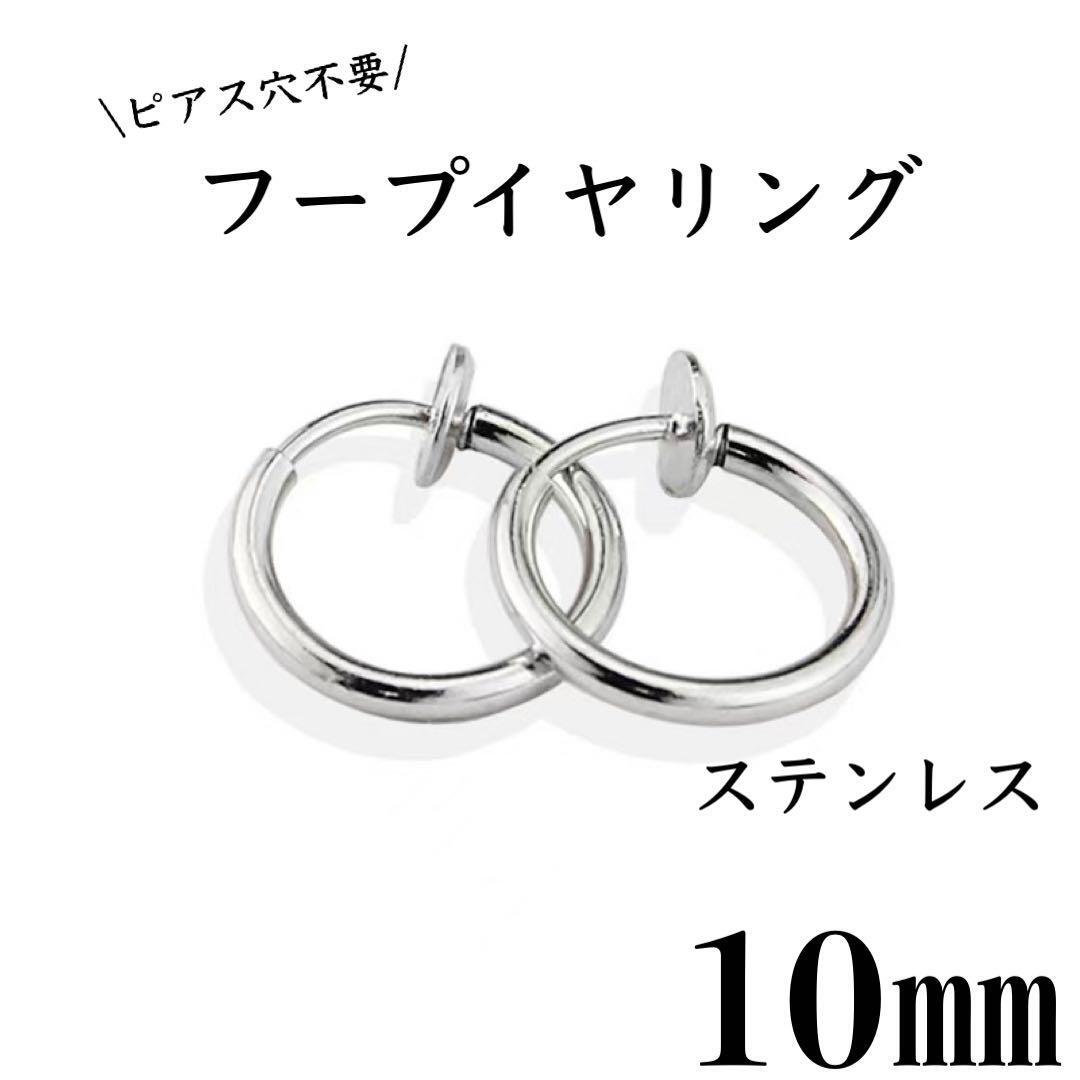 - フェイクピアス フープイヤリング シルバー ステンレス 10㎜ 2個セット