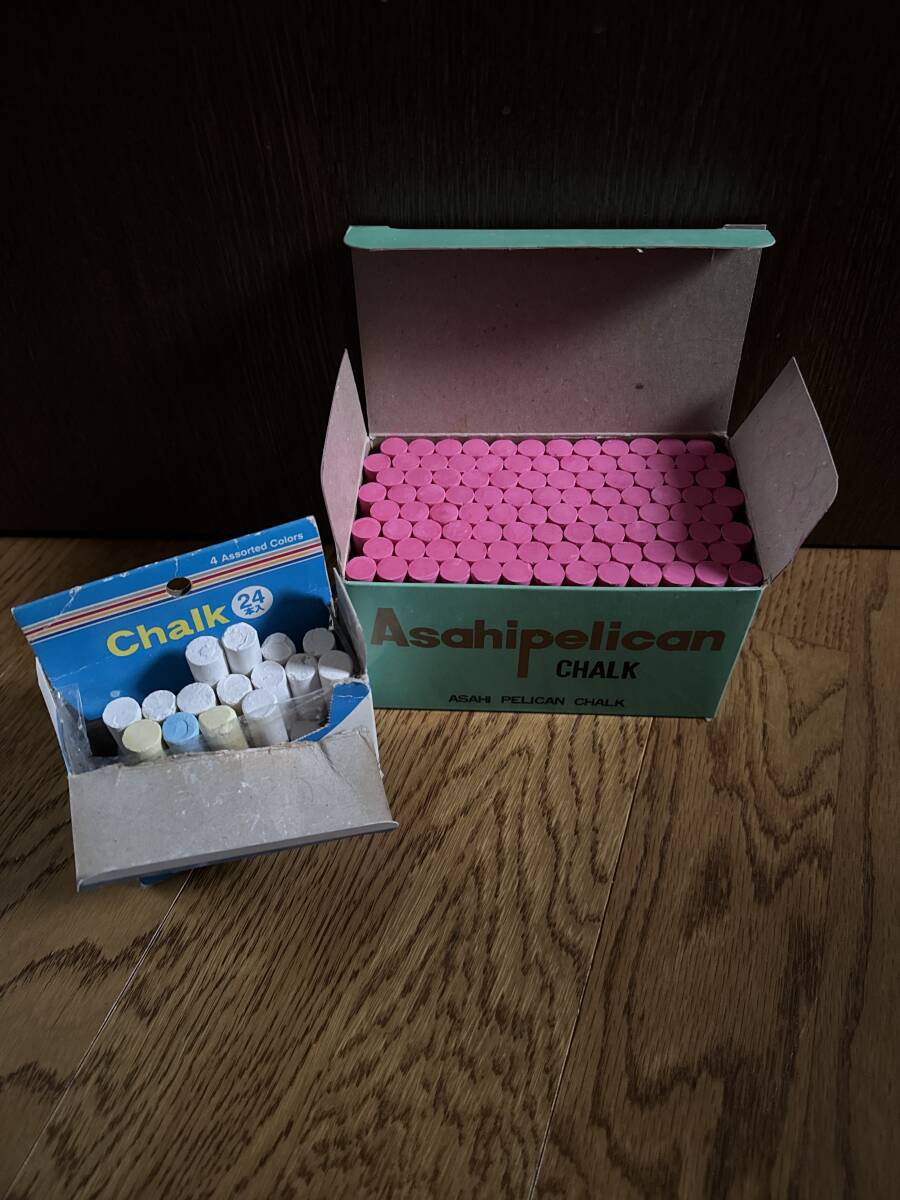- ◎アサヒペリカン チョーク 赤&白/黄/水色 100本+おまけ