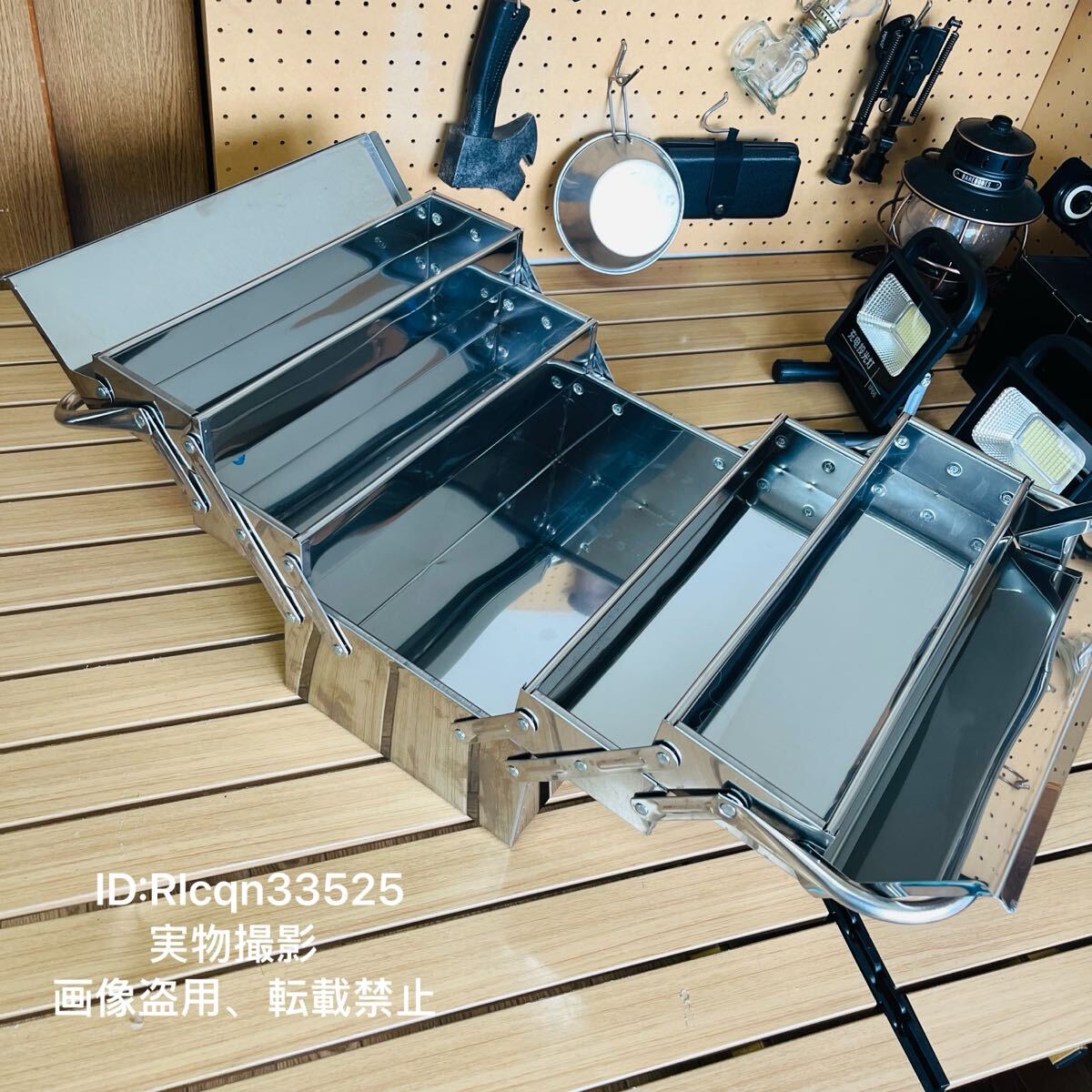 > ステンレス製 折りたたみ式ケース ツールボックス 多段収納 工具箱 持ち運び便利 大容量 耐久性抜群 整理収納 アウトドア 46×20×20cm