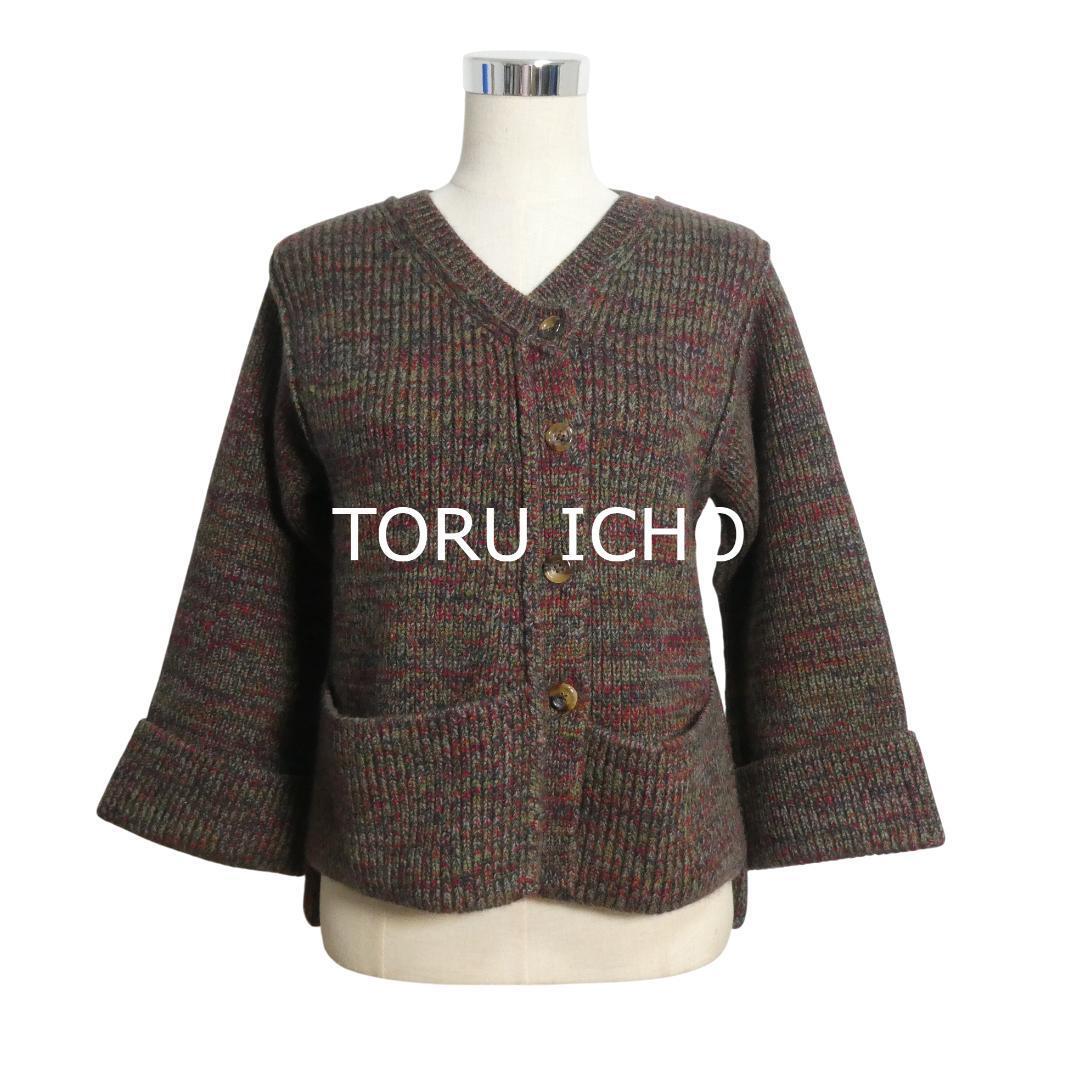 > 極美品 TORU ICHO トオルイチョウ カシミヤ100% ニット カーディガン Vネック 長袖 ポケット マルチカラー