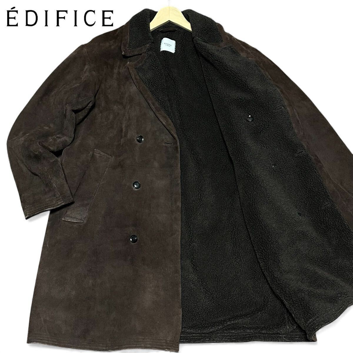 - 極美品/Lサイズ●希少!!エディフィス【100万の極暖】ムートンコート レザージャケット本革 山羊革 ゴートレザー スエード ボア 茶 EDIFICE
