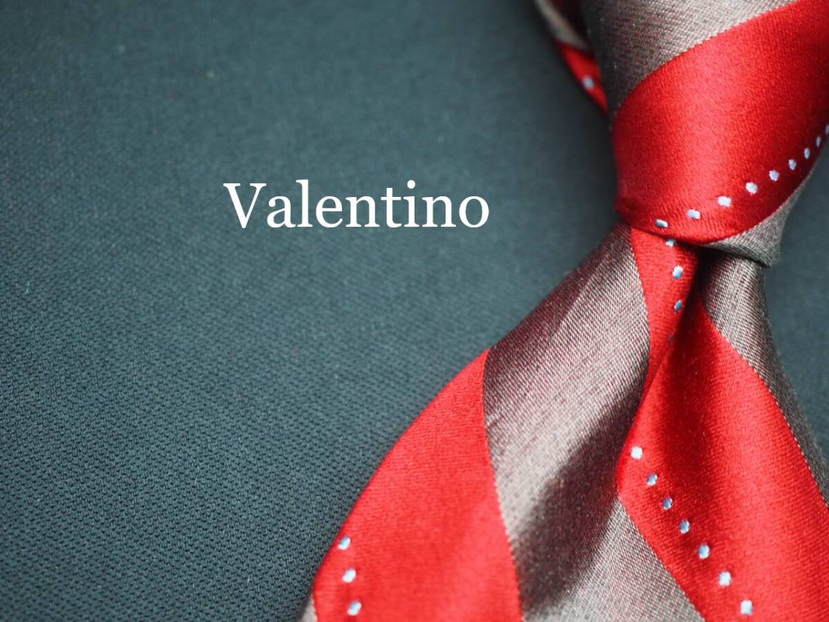 - 【VALENTINO ヴァレンティノ】 G1122 赤 グレー系 SILK ブランド ネクタイ 古着 良品 転売 仕入