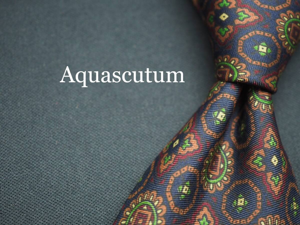 - 【Aquascutum アクアスキュータム】 G1193 ネイビー系 SILK ブランド ネクタイ 古着 良品 転売 仕入